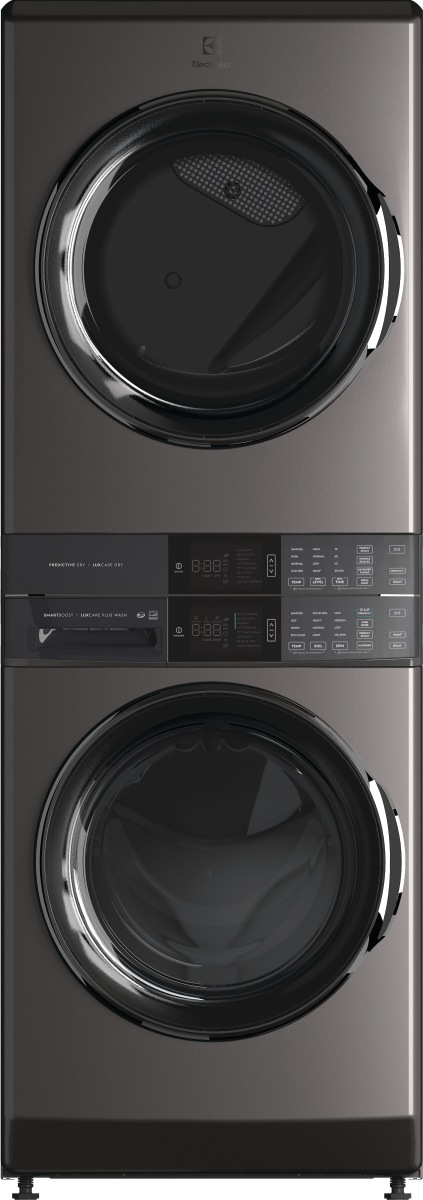 Full-size and fully integrated front load electric Electrolux Laundry Tower™ features a stacked design that takes up half the floor space, freeing up the laundry room for extra storage, all with an easy to reach control panel. The washer provides the most effective stain removal with SmartBoost® premixing technology.Read More