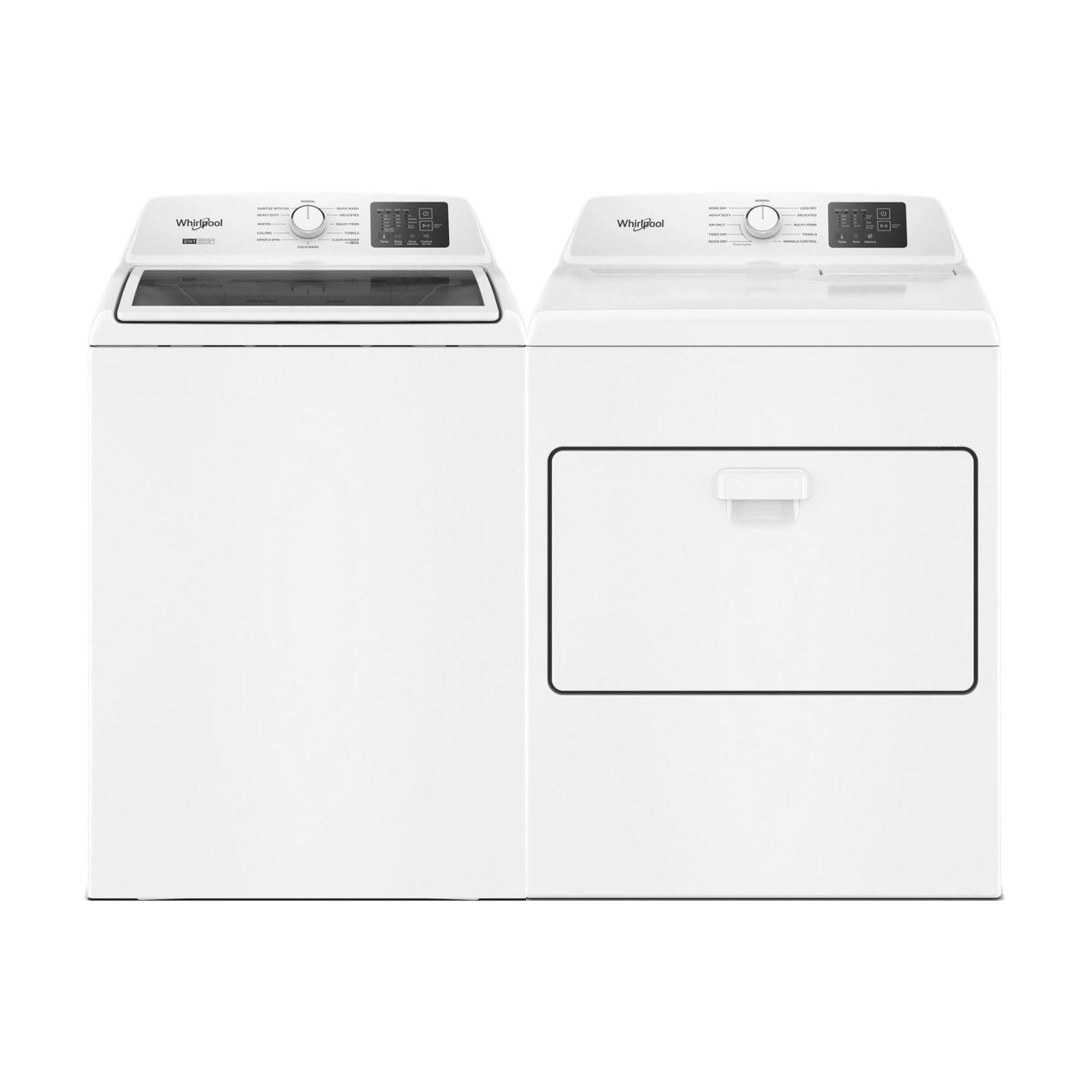 Whirlpool® White Laundry Pair with a 4.2 cu. ft. capacity top load washer and a 7.0 cu. ft. capacity front load electric dryer.Read More