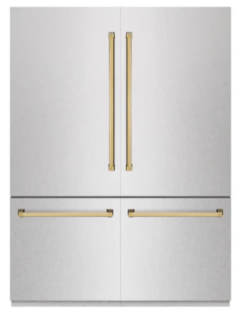 Luxury isn’t meant to be desired - it’s meant to be attainable. The ZLINE Autograph Edition 60 in. 32.2 cu. ft. French Door Built-In Bottom Freezer Refrigerator with Water Dispenser and Ice Maker in Satin Stainless Steel with Graphite Gray Interior and Polished Gold Accents (GRBIVZ-SN-60-G)Read More