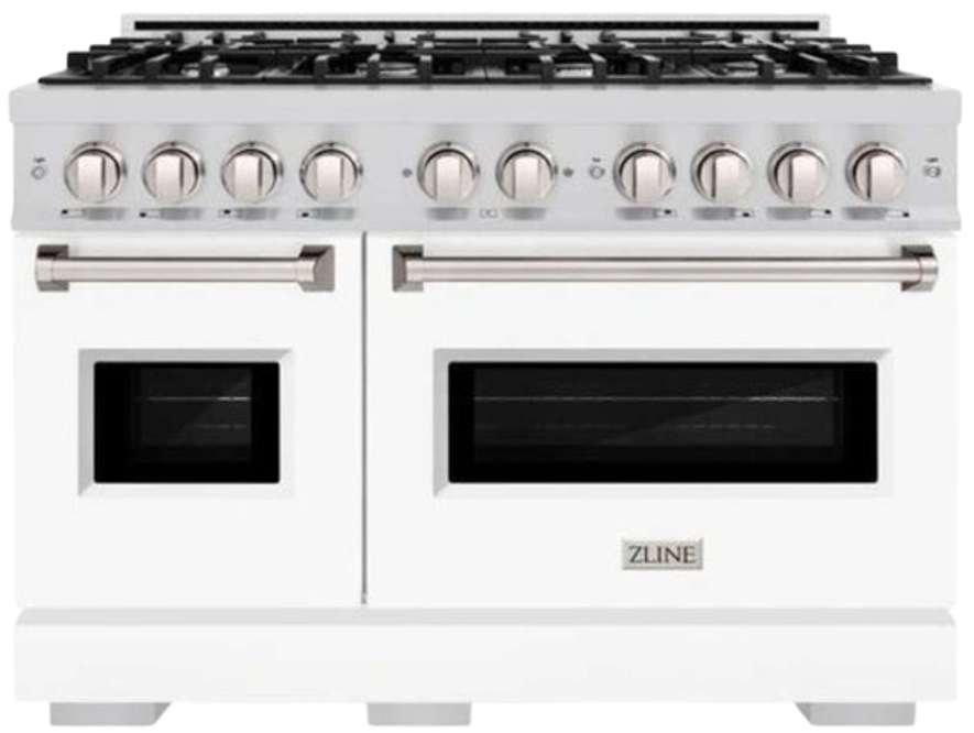 Luxury isn’t meant to be desired - it’s meant to be attainable. The ZLINE 48 in. 6.7 cu. ft. Classic Double Oven Gas Range with 8 Burner Cooktop in Satin Stainless Steel with White Matte Doors (CGRS-WM-48)Read More