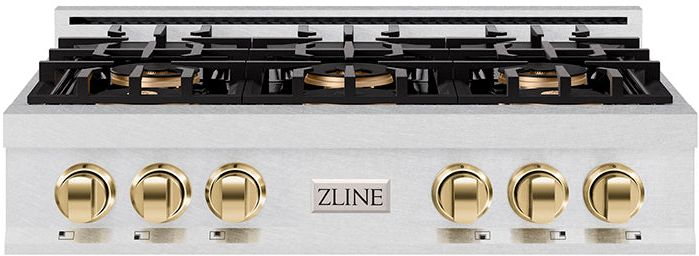 Customize your ZLINE Autograph Edition Classic Gas Rangetop with DuoPro™ Cooktop with elegant Polished Gold knob and ring accents