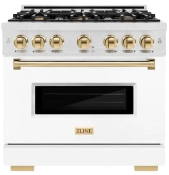 The elegance of a hand-finished porcelain gas cooktop with 6 Italian-made auto-reignition burners, a gas convection oven with an energy-efficient cooling fan to ensure quiet operation, a beautiful white matte door with a Landscape window design, and stunning champagne bronze knobs and handle allowing you to master every meal. With a modern, timeless style and refined functionality, ZLINE Classic Gas Ranges are masterfully crafted to deliver an elevated culinary experience.