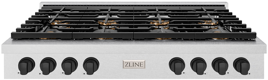 Customize your ZLINE Autograph Edition Paramount Gas Rangetop with DuoPro™ Cooktop with elegant Matte Black knob and ring accents